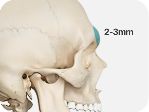 眉骨の部分がひどく発達した場合は、目が内側に凹んで見え、 目に影ができて相対的に額が平たく見えるため、 額にプロテーゼを入れずに「眉骨を縮小」するだけで、 なめらかで自然なラインの額を作ることが可能です。