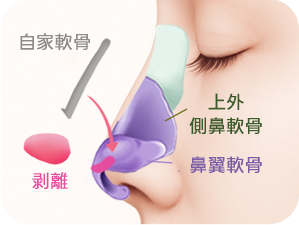よりスリムな鼻先を作るために、自家軟骨を移植し、はっきりとした印象を与えます。