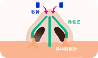 鼻中隔軟骨と 鼻側壁の間に軟骨を移植