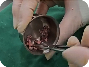 採取した軟骨を 特殊手術器具を用いて 細かく刻みます。