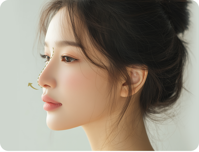 ラボムの低い鼻の整形は、全体的な顔の輪郭や個々の解剖学的な特徴を考慮し、適度な高さと幅でデザインします。