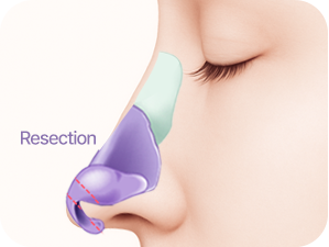 Excess fat tissue at the nasal tip is carefully removed, and the cartilage is reshaped to create a sharper and slender nose tip.
